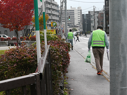 周辺の清掃活動を行い、地域への社会貢献として良好な公共空間づくりを目指します。