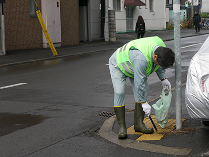 雪解け後との事もあり、清掃した場所には吸い殻、空き缶、ペットボトル等が多く見受けられました。